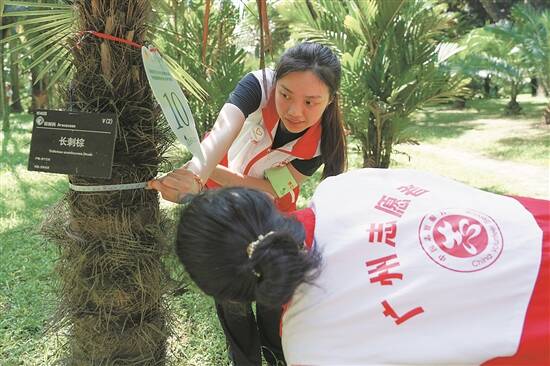 青少年志愿者测量树径 羊城晚报记者 鄢敏 通讯员 穗团宣 摄