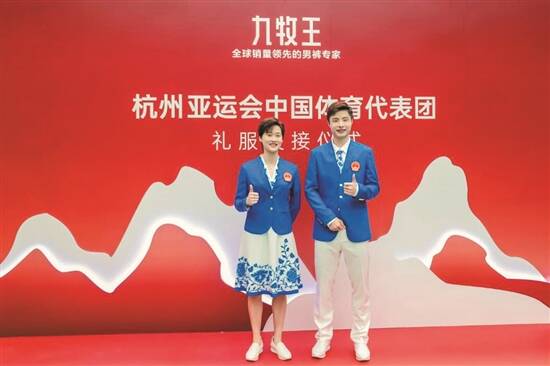 杭州亚运会中国体育代表团礼服交接仪式15日在北京举行,礼服“星耀”发布,中国羽毛球运动员陈雨菲、石宇奇试穿后都表示“很舒服”(见图)。