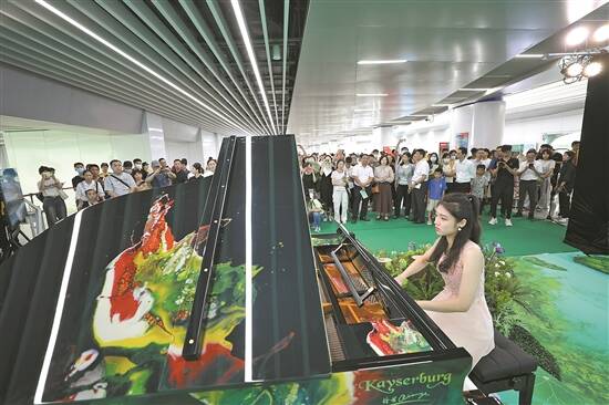 在揭幕活动现场,《沧海一声笑》《十面埋伏》《春江花月夜》《步步高》等经典曲目轮番上演,古筝、二胡、琵琶、广东音乐“五架头”与钢琴相得益彰,吸引了不少市民驻足观赏。市民徐先生称赞道:“这是一个非常好的活动,利用地铁的空间就可以让市民亲近音乐,享受音乐的盛宴。”