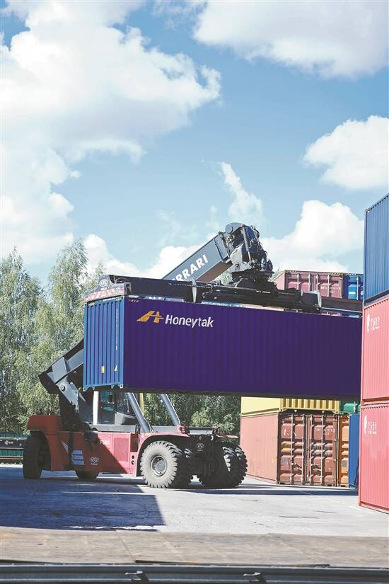 据安德烈介绍,车站包含了集装箱存储仓和综合储存仓,其中仅1号仓库就能存储近25万吨货物。在这里,仓库货物吞吐量经常超过70%,是绝对的“热闹场所”。“这其中包含了进出口及过境货物。为了扩大运输量,车站附近也配套建设了多个可提供服务的现代物流中心。”安德烈称,得益于“一带一路”高品质伙伴关系,中白两国之间的贸易额越来越高,他们正计划在科里亚季奇车站内再建设一栋处理货品报关文件的办公楼。