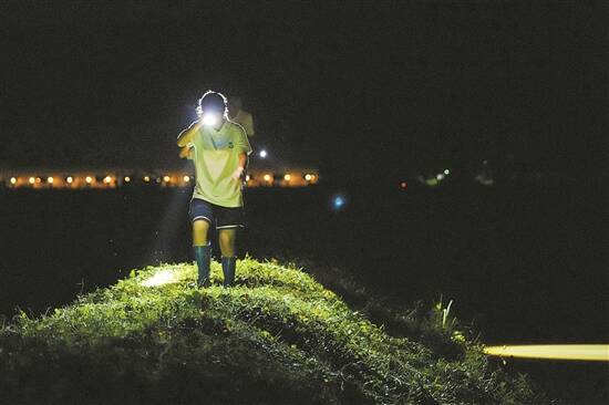 驻村学生们夜间巡塘