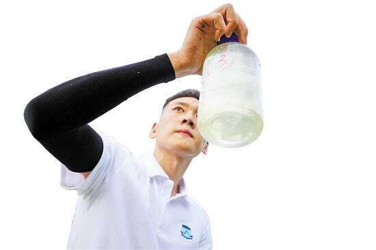 余杰收集试验田的水体采样