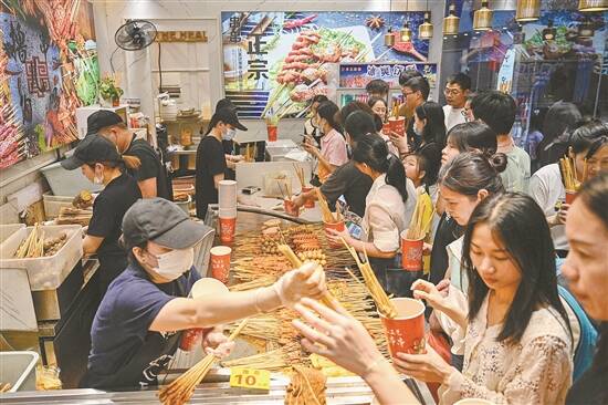 今年以来,广东消费市场持续恢复。图为广州北京路步行街一家挤满顾客的小吃店 羊城晚报记者 钟振彬 摄
