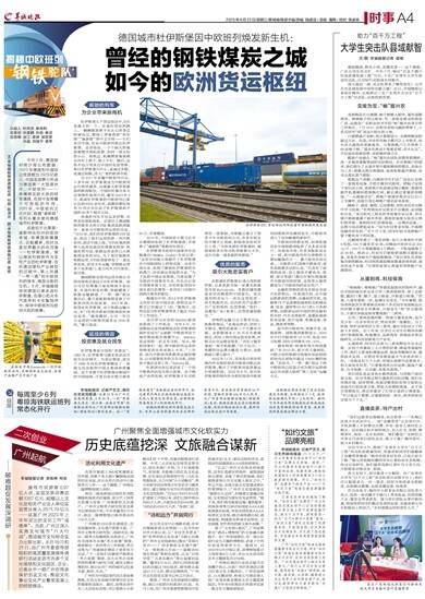 这座位于北莱茵-威斯特法伦州的欧洲老城,有德国规模最大、功能最多,同时也是世界最大的内河港——杜伊斯堡港。曾以煤炭和钢铁作为支柱产业的杜伊斯堡,在环境治理和产业转型的过程中,乘上共建“一带一路”和中欧班列的快车,焕发出新的生机。8月,羊城晚报特派德国记者走进杜伊斯堡,在港口的火车汽笛声和卡车轰鸣声中,探寻中欧班列与欧洲大陆的故事。