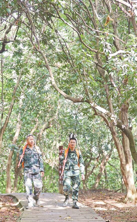8月的东莞骄阳似火,钟华和队员们又开始了一天的巡林工作。钟华巡逻的林区地处东莞市清溪镇。清溪镇是生态大镇,镇内森林面积达5534公顷,林区内人流密集度较大,森林防火压力较大。因此,钟华的巡山护林工作来不得半点马虎。