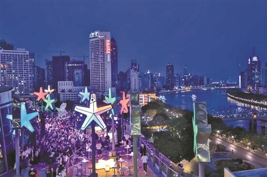 在星寰,观展和欣赏音乐会同样成为最吸引年轻人的夜娱生活方式。“星奇计划”是星寰打造的长期艺术平台,致力推广在地文化,连接艺术、生活、商业之间多元延伸可能。其推出的“星空间艺术展”和“π星行动”,至今已联动了超过20位本土艺术家参与其中。借助无敌江景,星寰打造的广州首个“Live house by The riverside”已经连续数月邀请湾区新锐音乐人和乐队,在“摘星奇缘”平台呈献气氛满格的珠江夜景视听盛会。8月25日,“Live house by The riverside”将邀请 “黑羊盒子乐队”演出,届时市民可以在“摘星奇缘”平台的徐徐晚风中享受惬意的夏夜音乐时光。