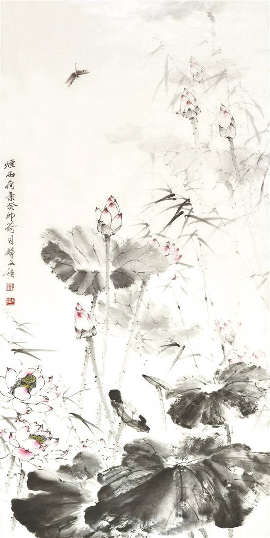 烟雨荷柔(国画)
