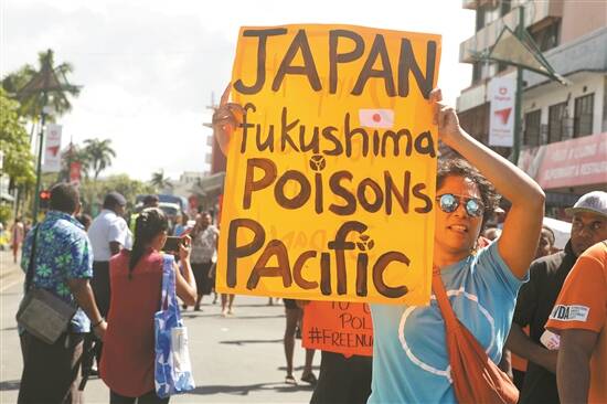 日本核污染水排海引发多国民众抗议,图为斐济民众手持“太平洋拒绝核污染”等标语游行 新华社发