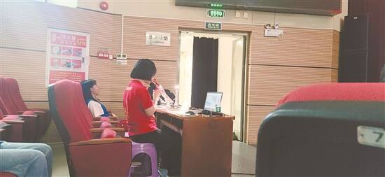 这不是一场普通的观影活动,而是一场专门为视障人士准备的无障碍观影。观众席上坐着四十多名视障人士,他们无法“看”电影,李淑莹就把台词之外的电影画面口述出来,充当视障人士们的“眼睛”。
