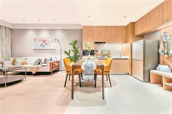 在鹏园,记者看到了适老化的设计理念渗透到了每一个硬件细节当中。家具和墙面转角处均采用圆角设计,避免长辈发生磕碰;走廊两侧都设有扶手,走廊加宽,可保障两个轮椅同时通过;室内照明均配置了防眩光灯光系统,柔和而不刺眼……适老化设计保障了居民长辈们在这里住得舒心又放心。