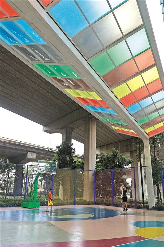 桥下空间变为市民运动场所