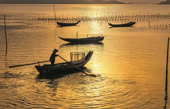 夕阳下的渔民 利路发 摄