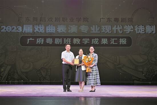 在致辞时,广东舞蹈戏剧职业学院副校长吴海勉励“广府班”的毕业生:“要用艺术赋能、主动作为,把粤剧传承好、发扬好,创造出更多更优秀的粤剧作品,讴歌人民、讴歌生活、讴歌时代。”