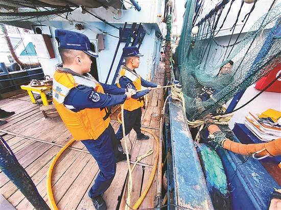 汕头 海警协助渔民做好防风举措 羊晚晚报记者 赵映光 通讯员 马寅生 摄