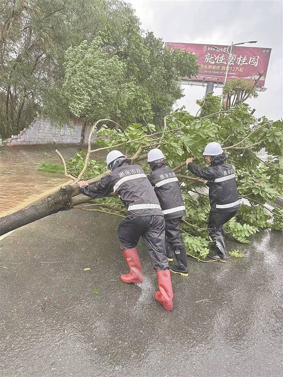 揭阳 惠来县市政人员清理倒伏路树 羊城晚报记者 张晓宜 通讯员 陈泽浩 摄