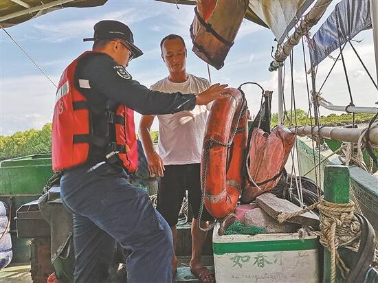 湛江 海警执法员向渔民讲解防台风事项 通讯员供图