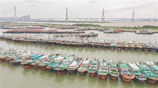 1日下午,在珠海洪湾中心渔港,大量船舶归港避风 羊城晚报记者 梁喻 摄