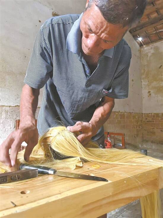 收来的木偶大多老旧,车清华从网上买来假发,跟兴叔一起给木偶做修复。以前对父子俩搞直播表示不理解的英姐,闲时也会来帮忙。