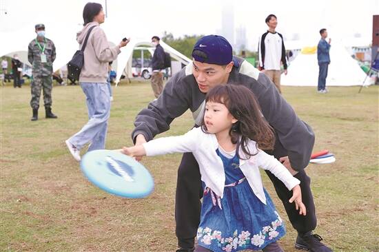 深圳打造复合型公园,图为2023深圳公园露营文化周市民在草地上玩耍