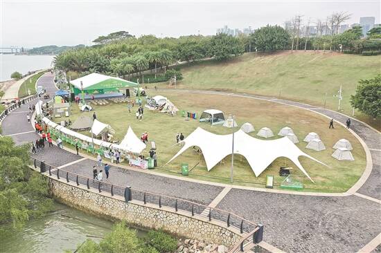 除深圳湾艺术营地之外,今年,深圳市城市管理和综合执法局紧跟当下的露营热点,根据公园自然禀赋和文化特色,结合市集、消费,进一步推动绿地开放共享,试点推出了莲花山YUAN生活城市营地、儿童公园萌芽欢乐营地、笔架山体育公园营地等特色营地,极大地丰富了公园服务内容和消费场景。