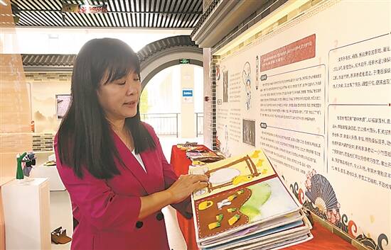 广州幼儿师范高等专科学校党委书记、校长丘毅清在介绍学生作品