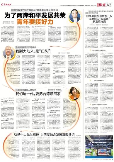 黎建南认为,要推动两岸关系和平发展,重点在“通”。“两岸加强交流,尤其是青年交流非常重要。”黎建南说,当台湾青年来到大陆,看到的是与台湾某些媒体宣传不一样的场景,看到大陆在国际舞台、经济建设、科技发展等方面的成绩,了解两岸更多同根同源的历史文化印记,自然就会做出正确的选择与判断,并且一传十、十传百,告诉更多的台湾青年,这个传播的力量比某些政治宣传的力量更大,某个大国的阴谋就不会得逞。