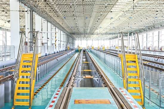 据介绍,姬堂停车场位于黄埔区丰乐北路东侧,石化北路南侧,总建筑面积约4.5万平方米,是七号线二期列车停车、临修、周检、月检及镟轮等作业场所,分为维修楼、运用库等10个单体建筑。施工过程中,面临工期紧、任务重、体量大、施工区域广、交叉作业多等困难。