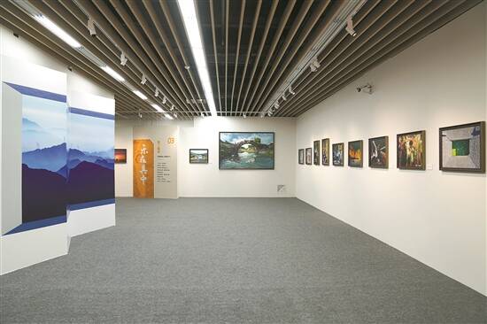在“山水之间”篇章,镜头定格了山青湖晏、鱼鸟成群、人在“画”游的美景。由32张图片组成的方格装置呈现广东省21个地市风景风貌,揭示“绿水青山就是金山银山”的生态密码;4幅以挂轴形式装裱的摄影作品阐释人与自然的和谐共生。
