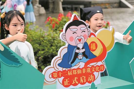 在第十二届“郑仙非遗文化月”开幕式活动中,实景情景秀表演带领市民穿越千年时空,再读郑仙传说,弘扬郑安期舍己为人的医者仁心精神;形象童趣十足的“郑小仙”则坐着印有“福”字的葫芦出场,和市民正式见面。据第十二届“郑仙非遗文化月”活动策划人黄志辉介绍,“郑小仙”以郑仙的传统形象为基础,将葫芦、仙鹤、仙袍等代表性元素,以卡通化的形式呈现。