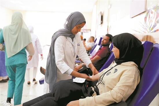 民众在摩洛哥马拉喀什一家血液捐献中心献血 新华社发