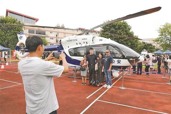 9月13日下午,同和警察训练基地,新警及家属与警用直升机合影 羊城晚报记者 周巍 摄