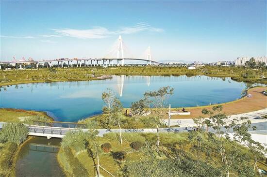 塑造山海生态廊道,用好用活原生自然文化资源是关键一招。据介绍,南滨绿地公园盘活周边资源,将轮渡渡口、工业遗址、妈祖庙等文化场地修旧如旧;保留和修复场地内的自然山体、古树名木、坑塘湿地,破除硬化地面,对土壤、岸线进行生态修复,种植抗风、耐盐碱乡土树种,丰富生物多样性。