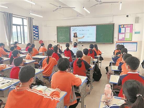 湛柳教育帮扶协作扎实推进,图为湛江支教老师在给学生上英语课 受访者供图