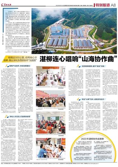 从海到山,湛江与柳州虽相隔近500公里,但交流合作由来已久、情缘深厚。湛柳协作自2017年开启以来,双方跨越山海、心手相牵,聚焦服务和融入新发展格局,紧扣高质量发展所需,跑出深化东西部协作“加速度”,共同描绘“山呼海应、携手致富”的新时代画卷。