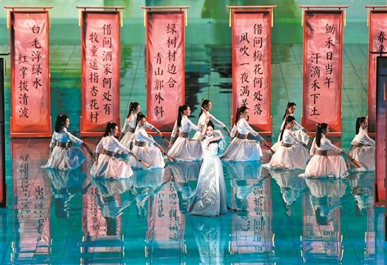 14日,演职人员在北京文化论坛文艺晚会上演唱歌曲《最美中国风》 新华社发