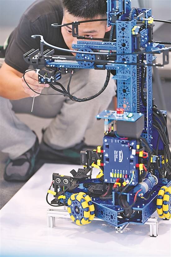 9月16日,选手参加移动机器人项目比赛 新华社发