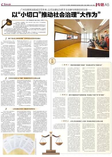 源头治理是治本之策,建章立制是长久之计,齐抓共管是解决之道。五年来,广州互联网法院用法治思维洞察涉网纠纷背后的社会关系和行业生态,以司法建议为切口,撬动社会多元力量参与数字产业协同治理,凝聚社会多元共治“同心圆”。