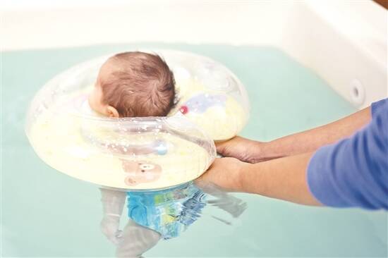 但是,需要注意的是,1岁以内的婴儿不建议戴颈部游泳圈游泳。赖茜表示,这是因为宝宝的脖子短,颈椎发育不成熟,戴在颈部的游泳圈可能会影响宝宝颈椎的发育。另外,颈部游泳圈可供选择的尺寸较少,不一定适合每一个宝宝,还可能会压迫到宝宝的脖子,而颈部有个地方,叫“颈动脉窦”,压迫到这个位置,可能会影响到宝宝的心脏节律,所以,不建议给1岁以内宝宝戴颈圈游泳。