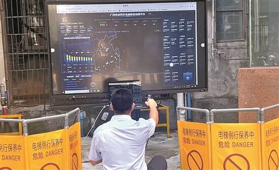 现场工作人员通过电梯智慧治理平台,随时了解辖内电梯运营状况