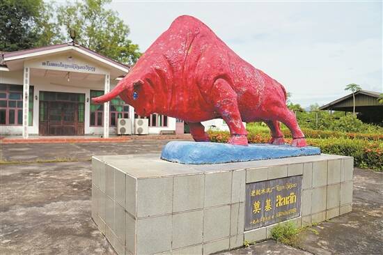 水泥厂厂区的红牛雕塑见证了中老合作的岁月