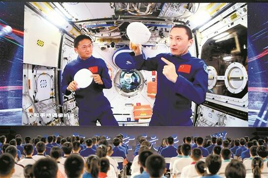 在约48分钟的授课中,神舟十六号航天员景海鹏、朱杨柱、桂海潮生动展示介绍了空间站梦天实验舱工作生活场景,演示了球形火焰实验、奇妙“乒乓球”实验、动量守恒实验以及又见陀螺实验,并生动讲解了实验背后的科学原理。授课期间,航天员通过视频通话形式与地面课堂师生进行了实时互动交流。