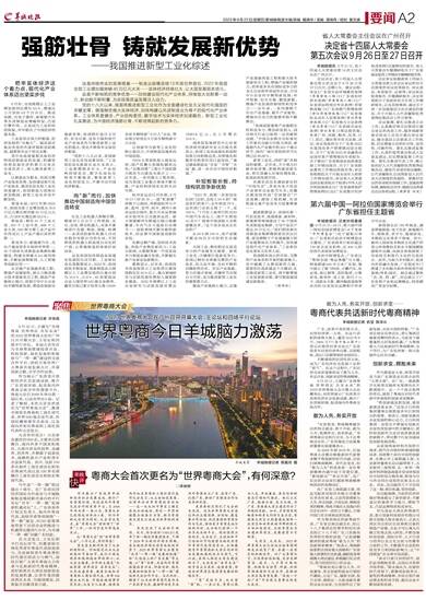 其次突出了大会的引领性。近日,经合组织(OECD)发布了新一期经济展望报告,下调了2024年全球经济增长预期。在全球经济增长前景疲软的背景下,2023世界粤商大会聚焦“共享‘一带一路’发展新机遇”和“打造海上新广东发展”等主题,以“粤”为桥,为海内外粤商搭建投资兴业、科技创新、绿色发展和积极参与“一带一路”建设的交流合作平台。与此同时,聘请了30名世界粤商代表作为广东投资大使,激励带动更多海内外粤商关注广东、投资广东、扎根广东,推动广东塑造合作与竞争新优势。