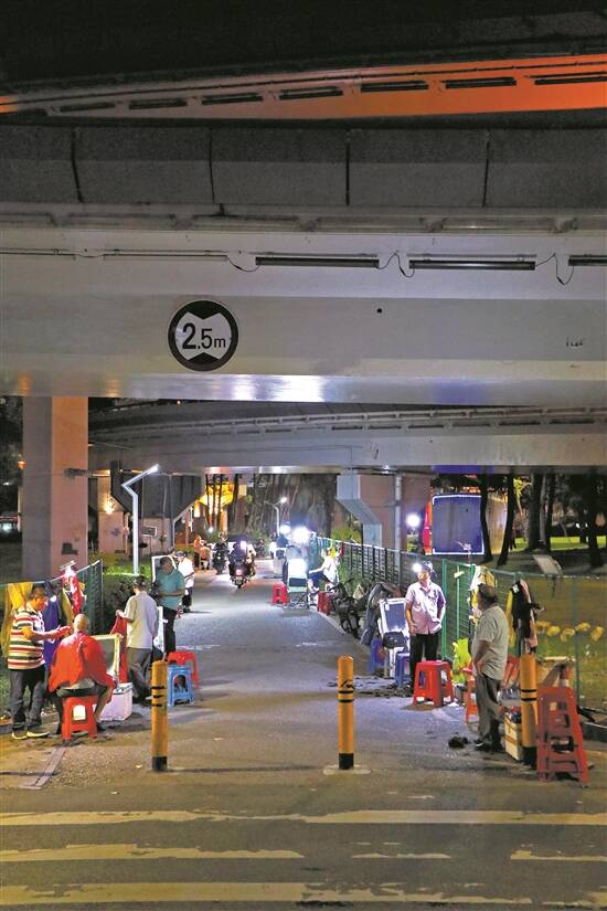 但像在西乡立交桥下,聚集如此之多的街头理发摊位,在深圳并不多见。9月19日晚上8时许,在非高峰时段,一路数过去,足有21个理发摊位在营业。