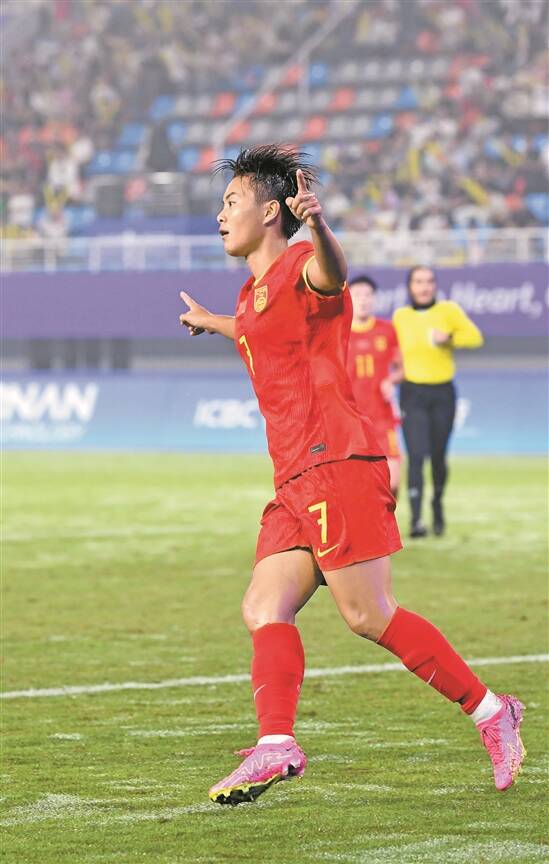 中国队前锋王霜庆祝进球 羊城晚报特派记者 林桂炎 梁喻 摄