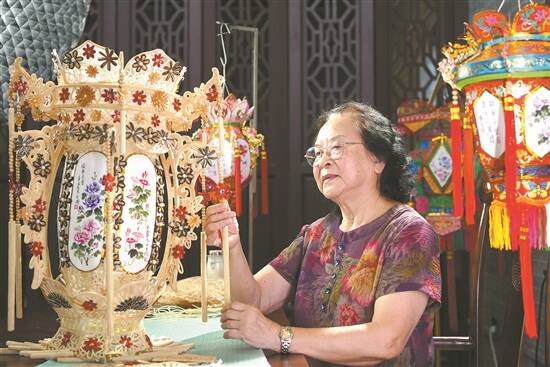 如今,78岁高龄的杨玉榕依旧坚持彩灯制作。她对记者说:“我特别喜欢做灯,退休18年,退而不休,做自己喜欢的事,有满满的幸福感。”从原民间艺术研究社的“小学徒”,成长为中国工艺美术大师和国家级代表性传承人,谈及自己60多年的艺术生涯,她的眼里依然闪烁着光芒。