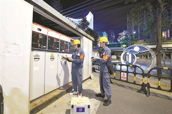 南方电网广东汕头供电局供电人员对濠江示范区电力设备进行巡查检修