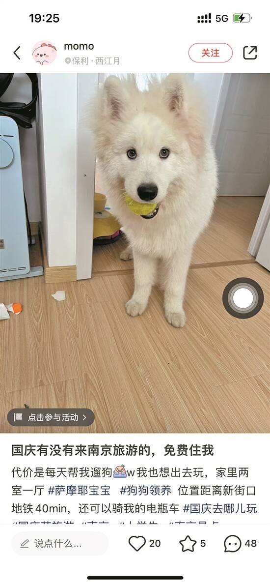 房主称,帮忙遛狗可减免房费 图源网络