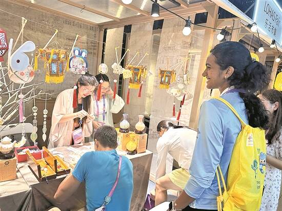 走进运动员村,人很容易就被熙熙攘攘的“乐活市集”吸引。该市集设有非遗、文创、动漫、游艺四大板块二十多个项目,集展陈、展卖、互动、游戏于一体,是人气最旺、故事最多的地方之一。