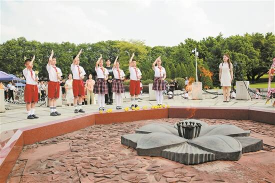 广州市银河烈士陵园广场,少先队员行队礼致哀思 通讯员供图