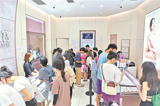 “人气太旺,值班经理和售货员根本忙不过来!”10月1日,在广州东山百货大楼,五楼黄金专柜的客流络绎不绝。常言道“金九银十”,随着中秋国庆假期的到来,婚嫁需求的集中释放也为黄金首饰市场添了一把火。在节假日促销和消费券派发的叠加因素下,不少门店更是“大排长龙”。